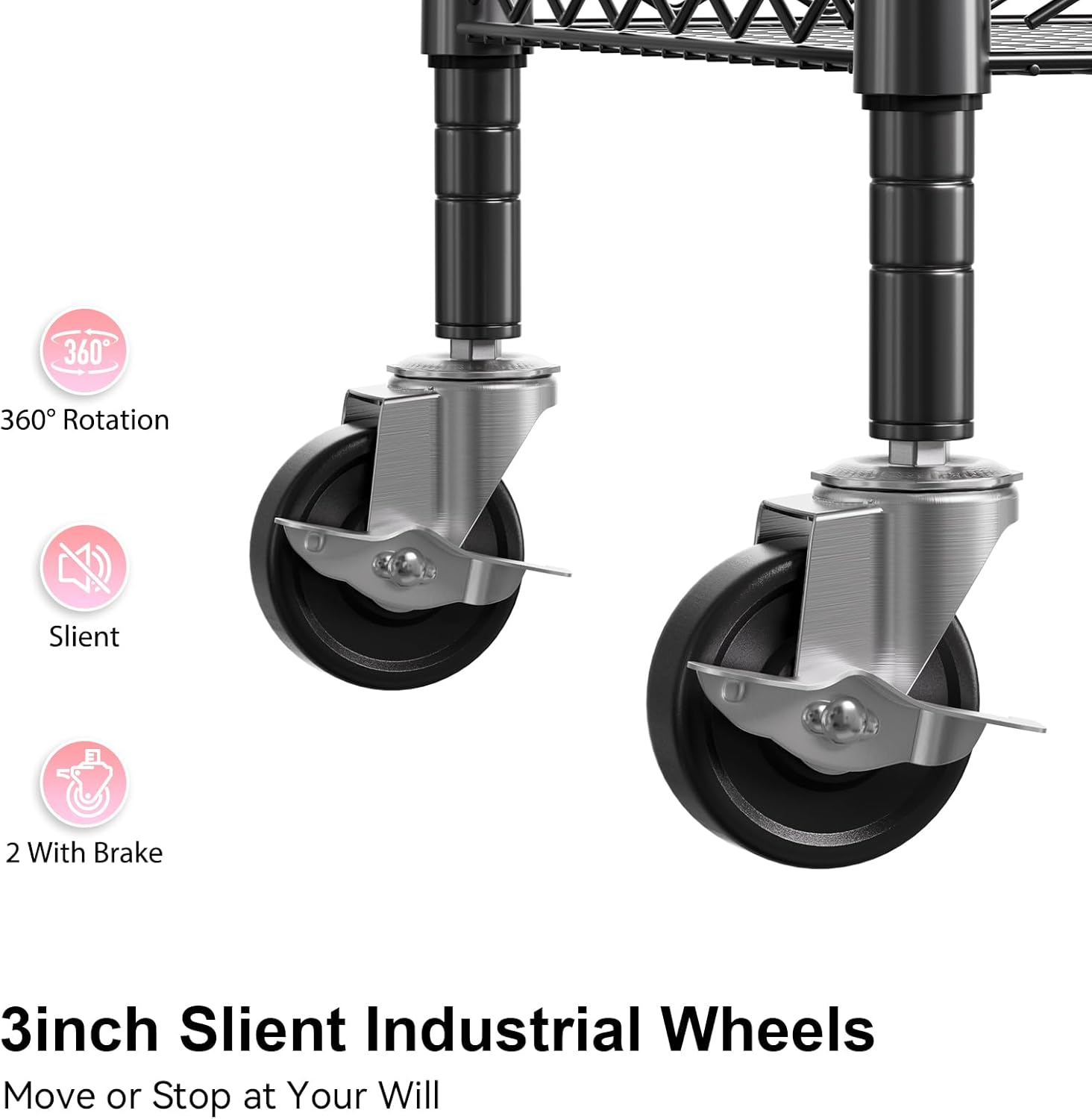 • 360° Silent Casters Utility Cart: The 3 tier rolling cart is designed with 4 silent casters; it transports heavy loads swiftly and smoothly. include 2 fixed locks wheels can hold the heavy duty utility carts with wheels firmly in place for added stability.
