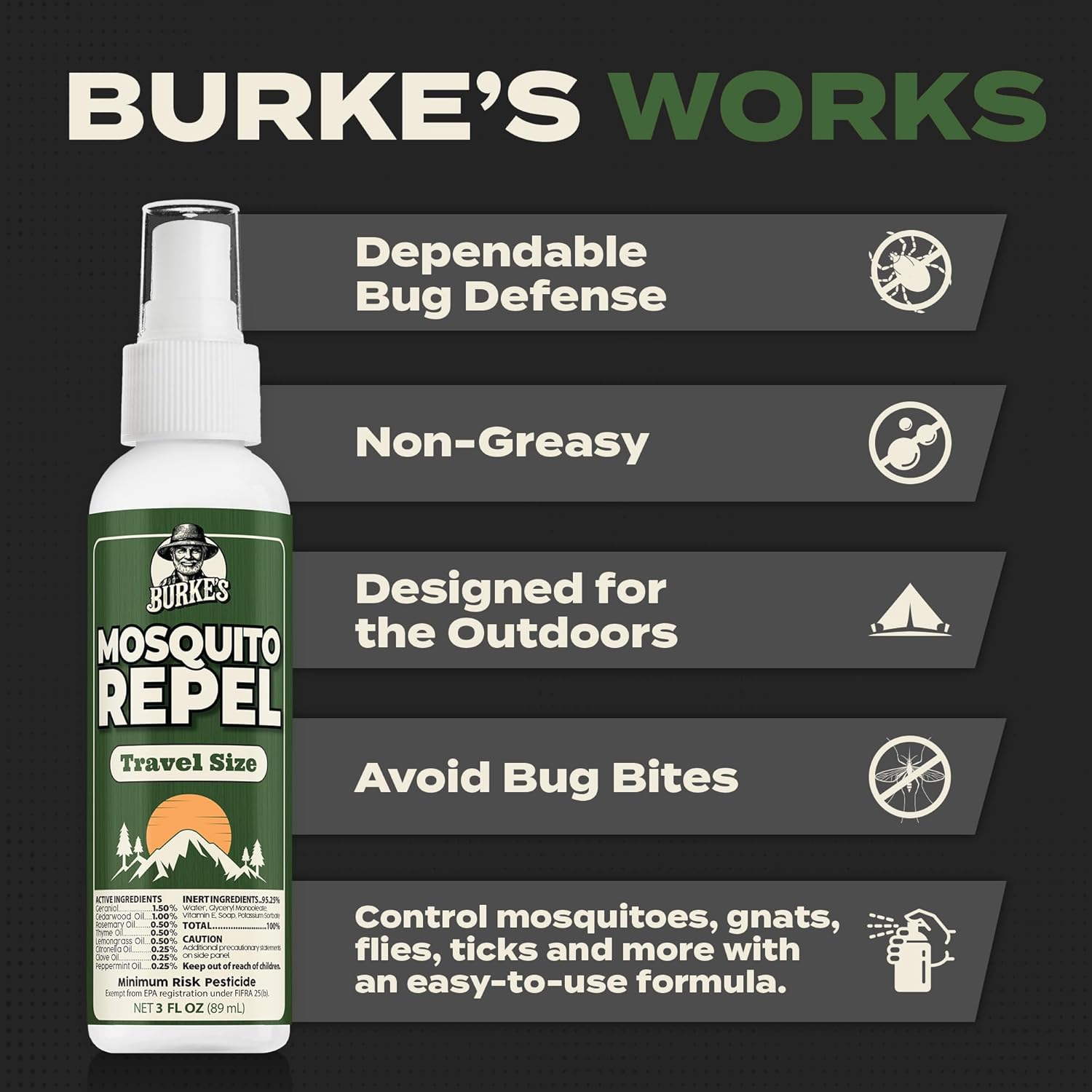 Burke's Natural Mosquito Repellent, DEET Free Mosquito Spray for Outdoor & Travel, 3 oz (90mL)