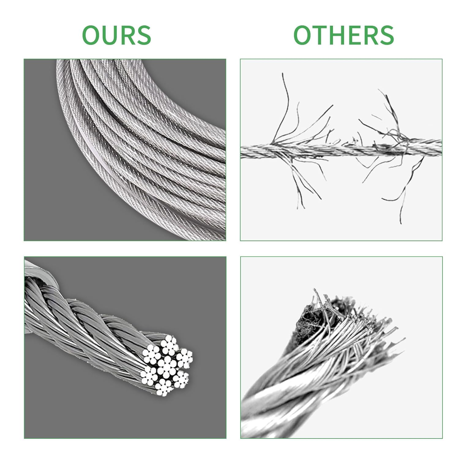 • 【Superior strength and durability】: The wire rope is made of 304 stainless steel, the wire cable structure is 7X7, with nylon coating on the surface to make it smooth, it is also insulated, rust-proof, corrosion-resistant, and withstands any harsh weather conditions such as strong sunlight and heavy rain.