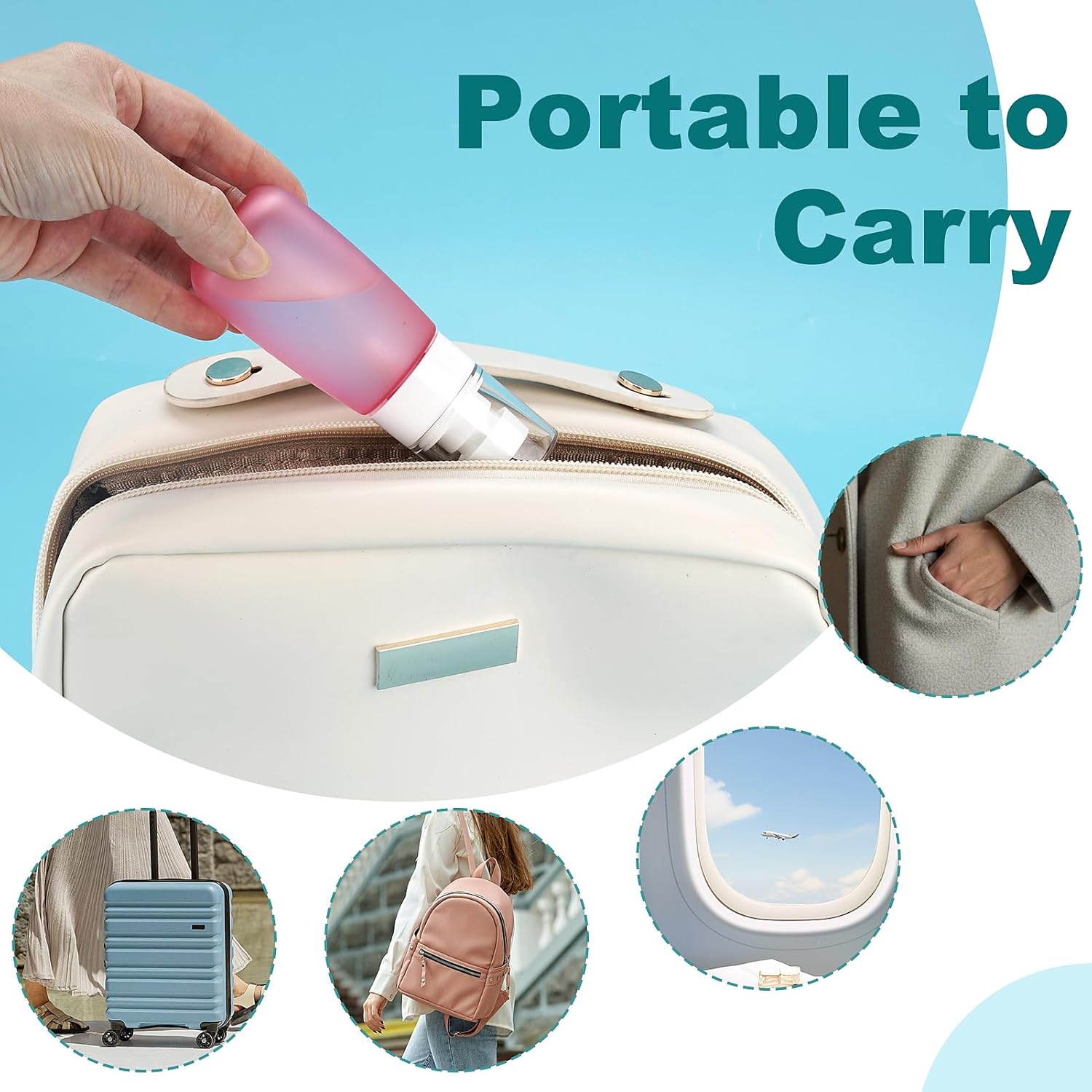 • Leak-Proof & Refillable: These travel-size spray bottles feature a secure twist cap and seal ring to prevent leaks, while the durable PETG material allows for easy refilling and long-term reuse.