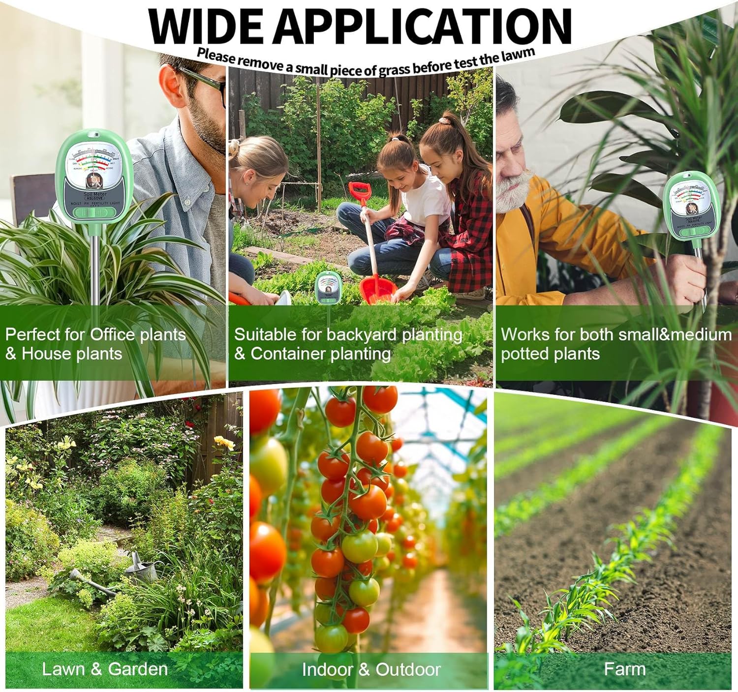 • 🔋【 Battery-Free & Root-Safe Design】No batteries required. The upgraded single-probe sensor minimizes root disturbance while still detecting accurate results in mixed or complex soils. Ideal for indoor and outdoor use across potted plants, gardens, compost, landscapes, and organic farming.