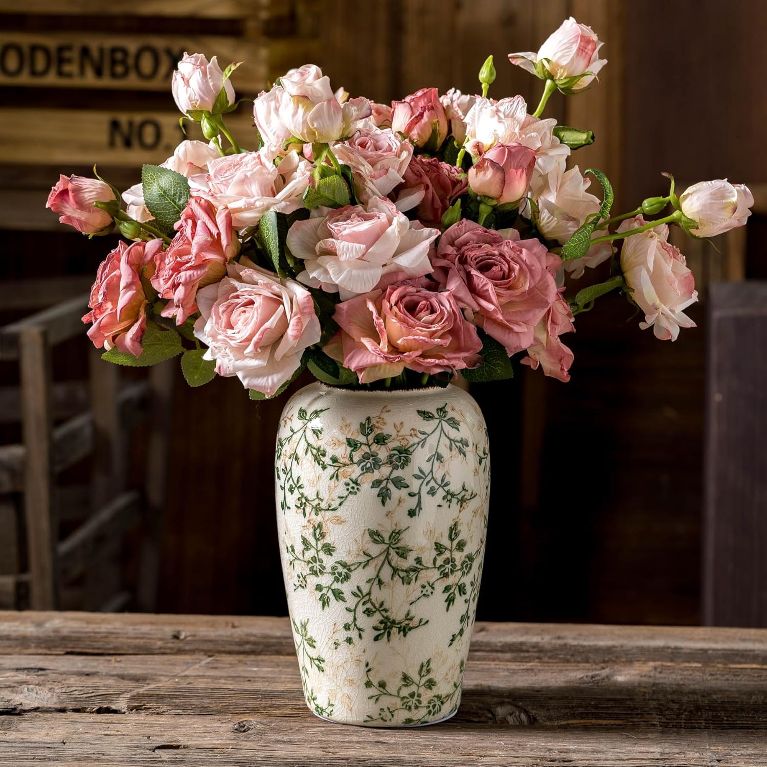 • Effortless Maintenance & Styling: Designed for easy cleaning and long-lasting use, this beige and green vase seamlessly blends with various themes—from vintage home decor to modern farmhouse. Its neutral palette complements white vases home decor setups and chinoiserie decor collections.