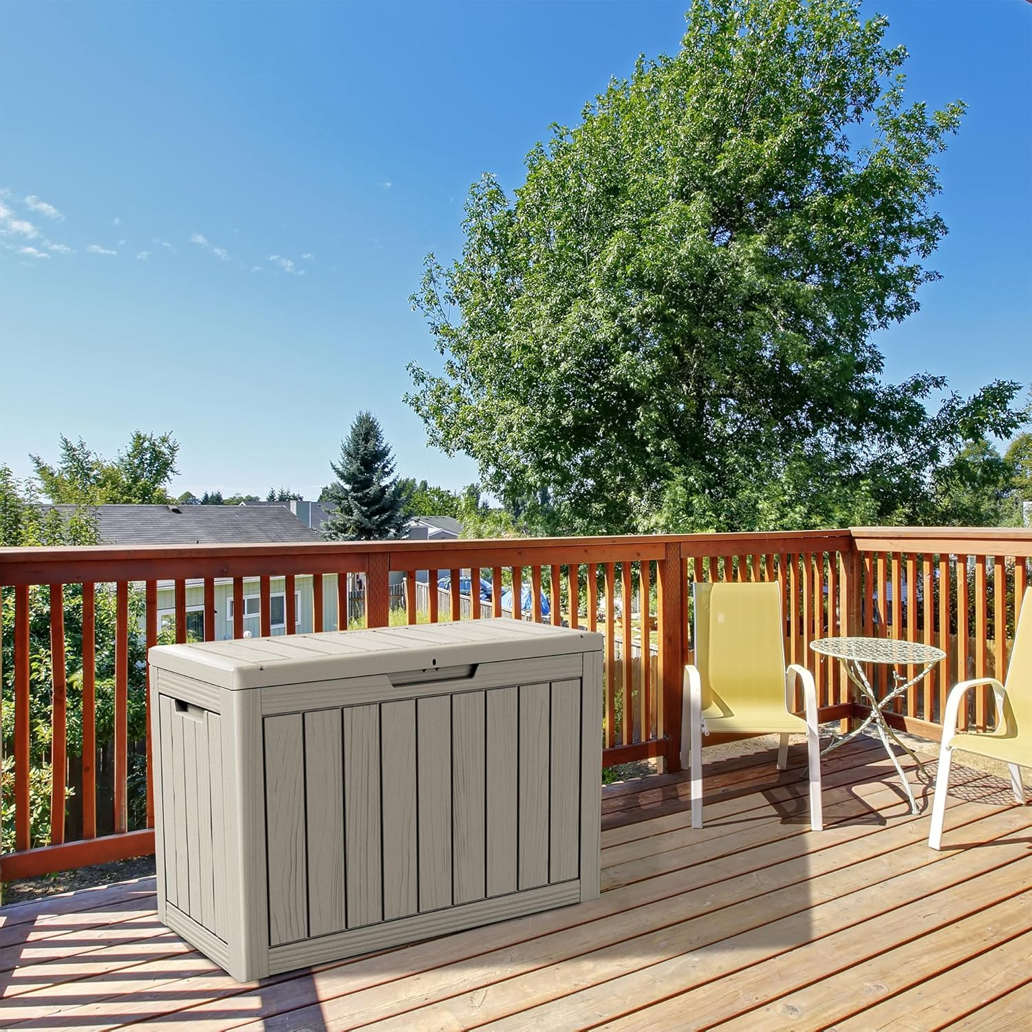 • Large Capacity: This 45-gallon deck box offers ample storage space for your outdoor accessories, and it has a 300-pound weight capacity and can be used as a separate patio seat or indoor table.
