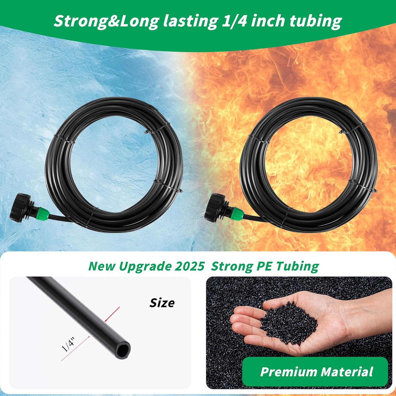 • AFTER SALE SERVICE: If you encounter any issues, please don't hesitate to contact us. Try this misting system now and stay cool on even the hottest days! Enjoy your outdoor activities with confidence and ease. (Warm Tip: IF THE GARDEN HOSE ADAPTER AND PE PIPE BECOME LOOSE, SOFTEN THE PE PIPE WITH HOT WATER BEFORE RECONNECTING IT TO THE ADAPTER.)