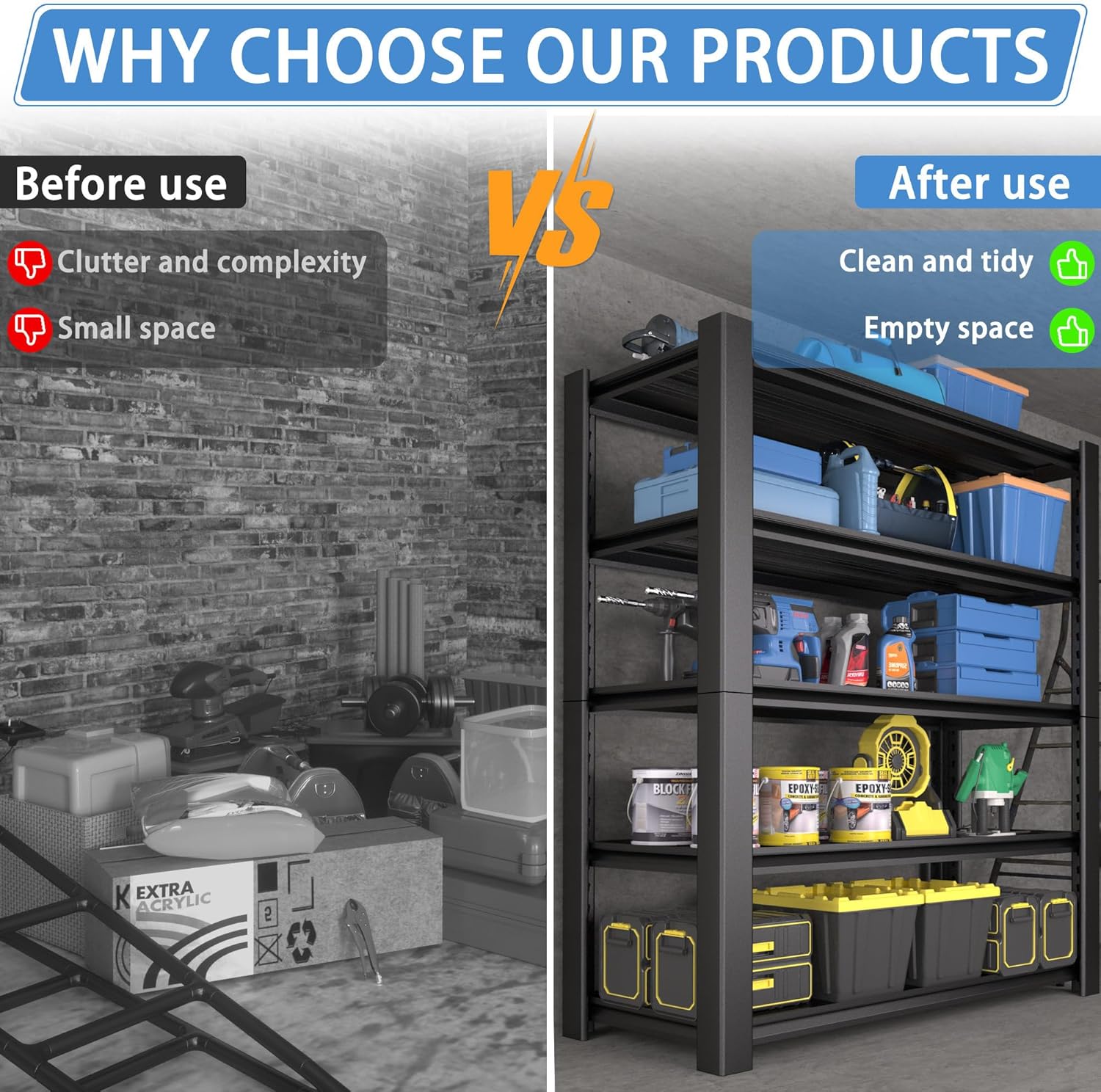 • Versatile for Any Space & User: This metal shelving unit declutters and organizes any area where you need storage. It's ideal for the garage, workshop, basement, pantry, utility room, or warehouse – holding tools, supplies, and household items with ease. Perfect for DIYers, mechanics, homeowners, renters, and handymen seeking a dependable storage solution.