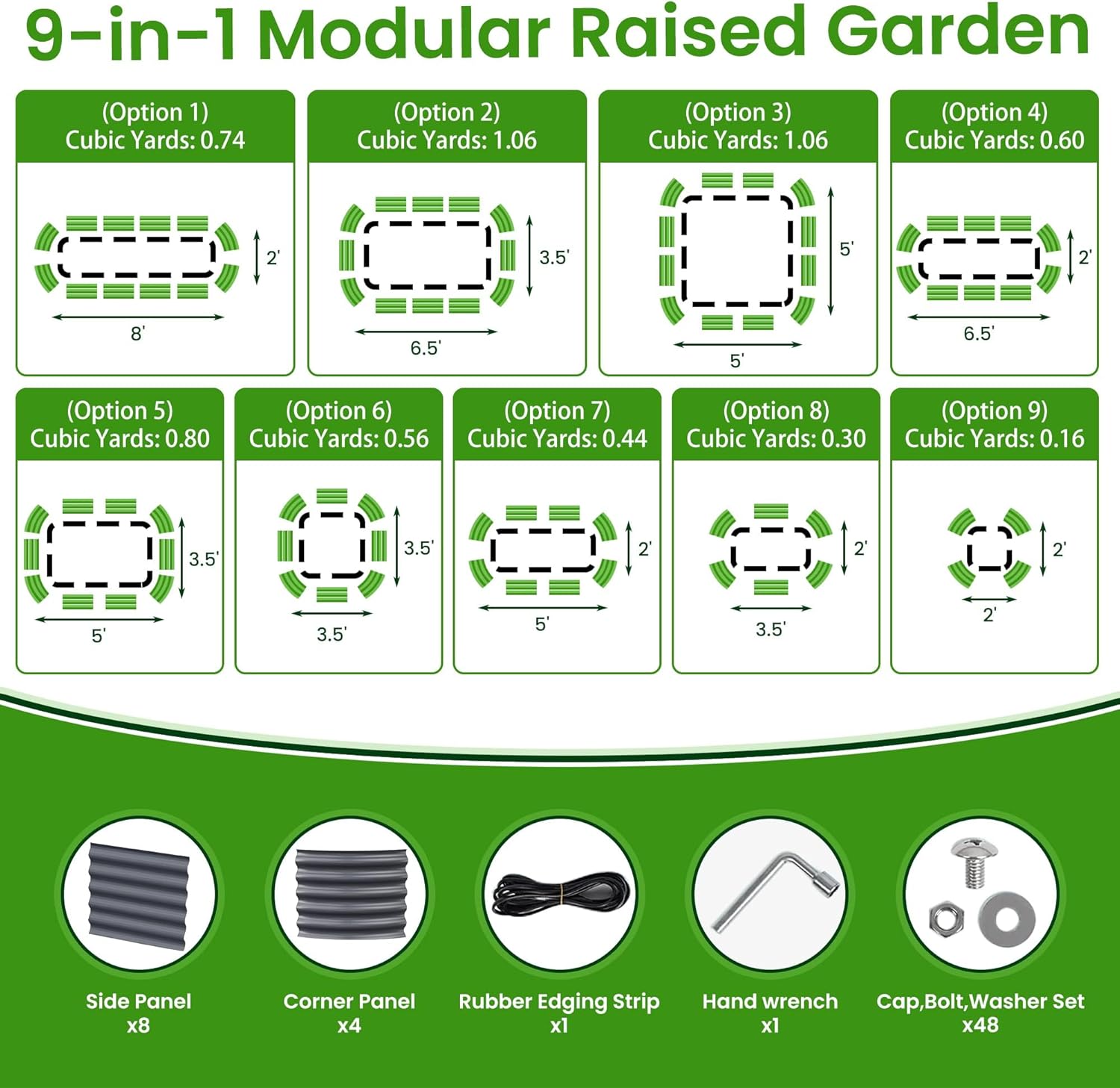 • Modular Raised Garden Bed:Our 9-in-1 modular kit means you can assemble one of 9 configurations,Pick your favorite one and then assemble your garden bed to fits your unique home garden space perfectly.