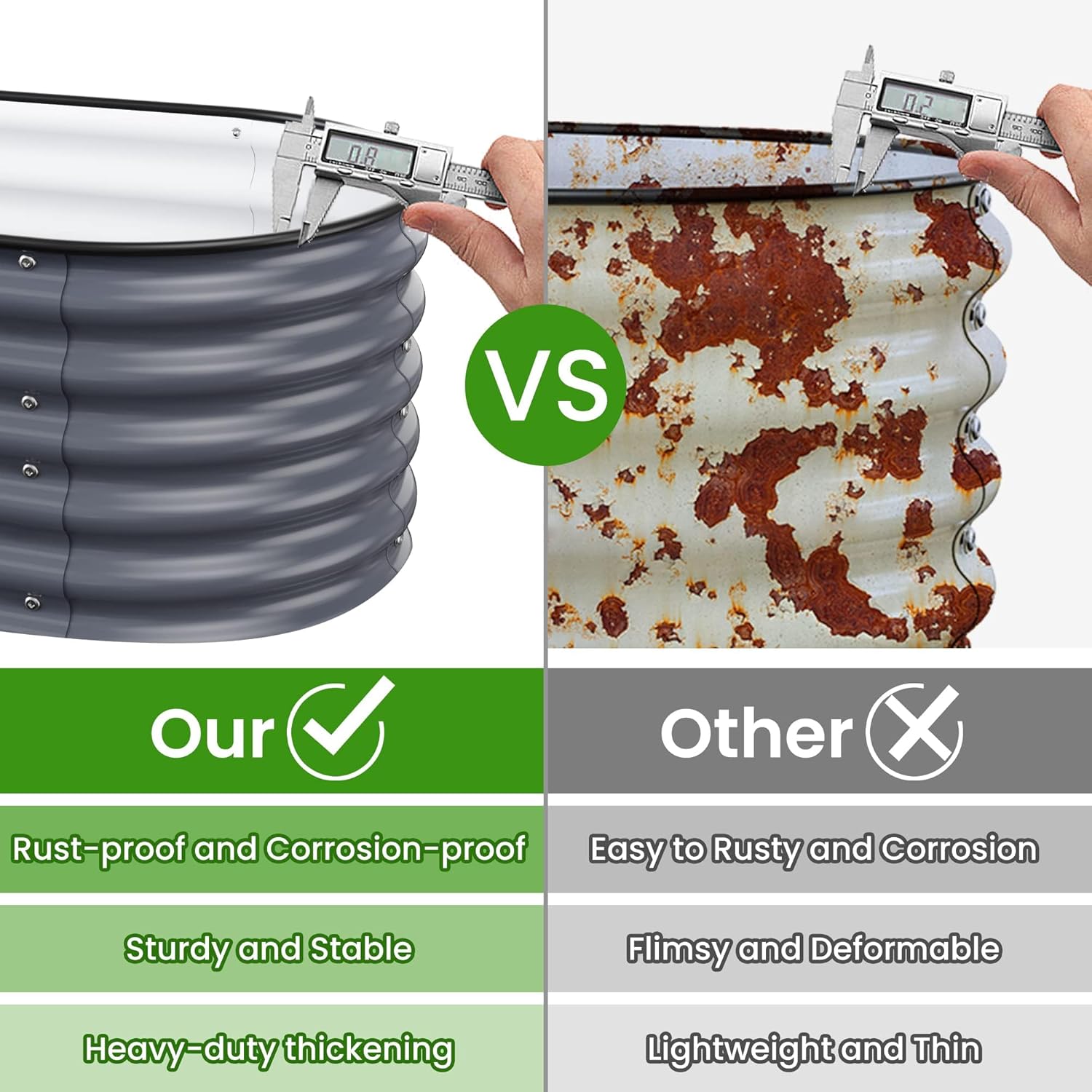 • Long-Lasting Quality:The garden beds are made of zinc aluminum-magnesium steel for durability. This advanced material is more resistant to corrosion and rust than traditional galvanized materials. Lasts 2-6 times longer than traditional galvanized raised beds, far longer than wood raised garden bed.