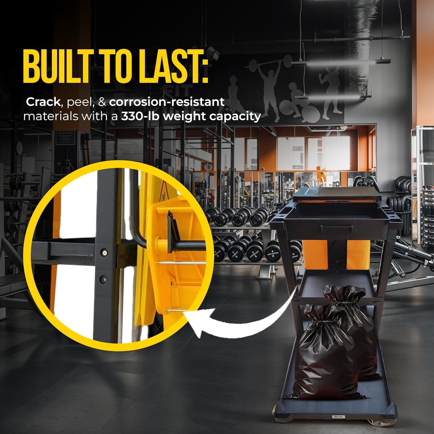 • Equipped with a 25-Gallon - 66 lbs. Capacity Waste Collection Bag and Garbage Lid that Prevents Odors Escaping