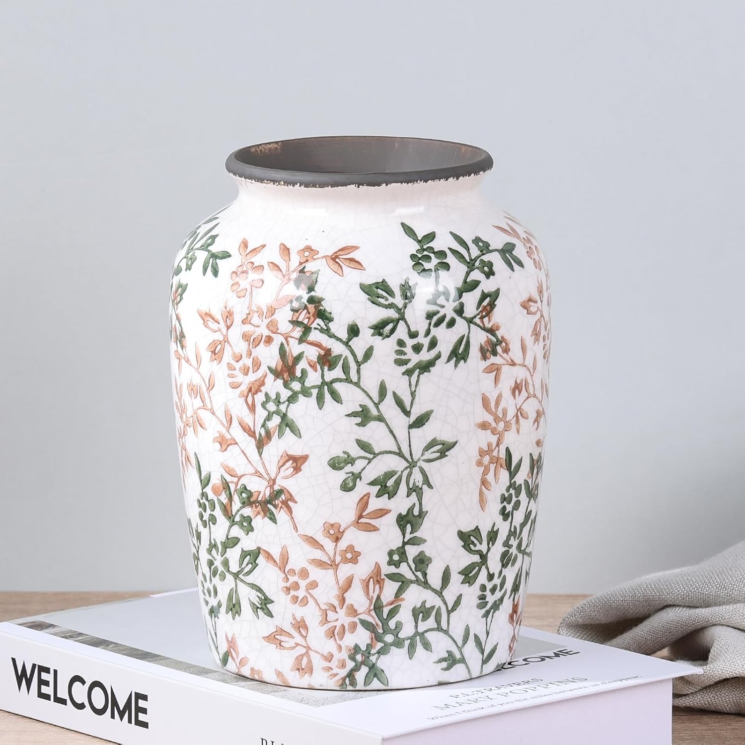 • Vintage floral vase: This floral print ceramic vase is designed in a vintage country style, inspired by antique flower pots, featuring delicate hand-painted floral patterns and enamel decorations, embellished with different bouquets against a rough background, giving it a warm feeling.