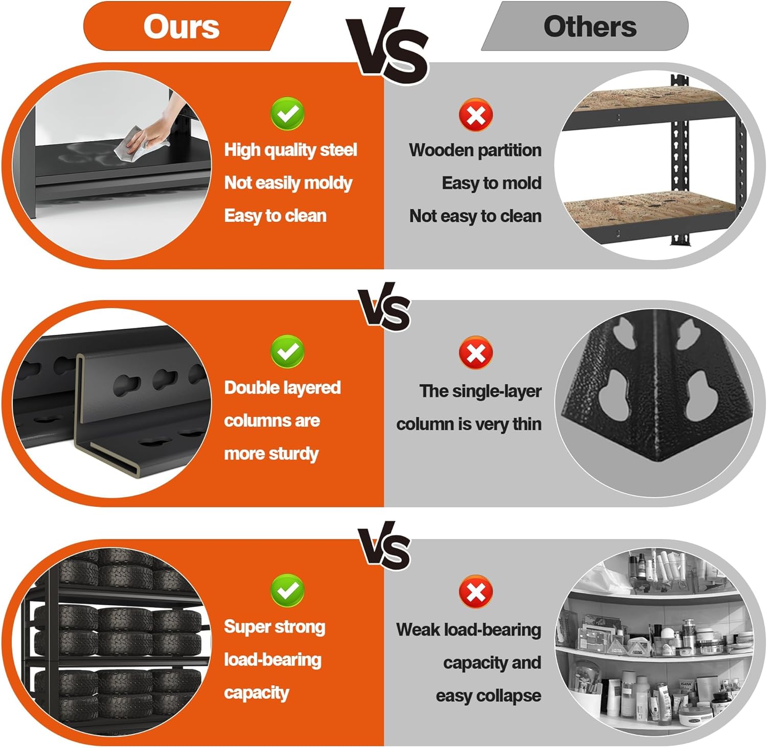 • 【Boltless Garage Shelving Assembly】 No bolts needed! Our garage shelves feature simple snap-fit assembly. Set up storage shelves in minutes – ideal for quick basement shelving or garage shelf installations.