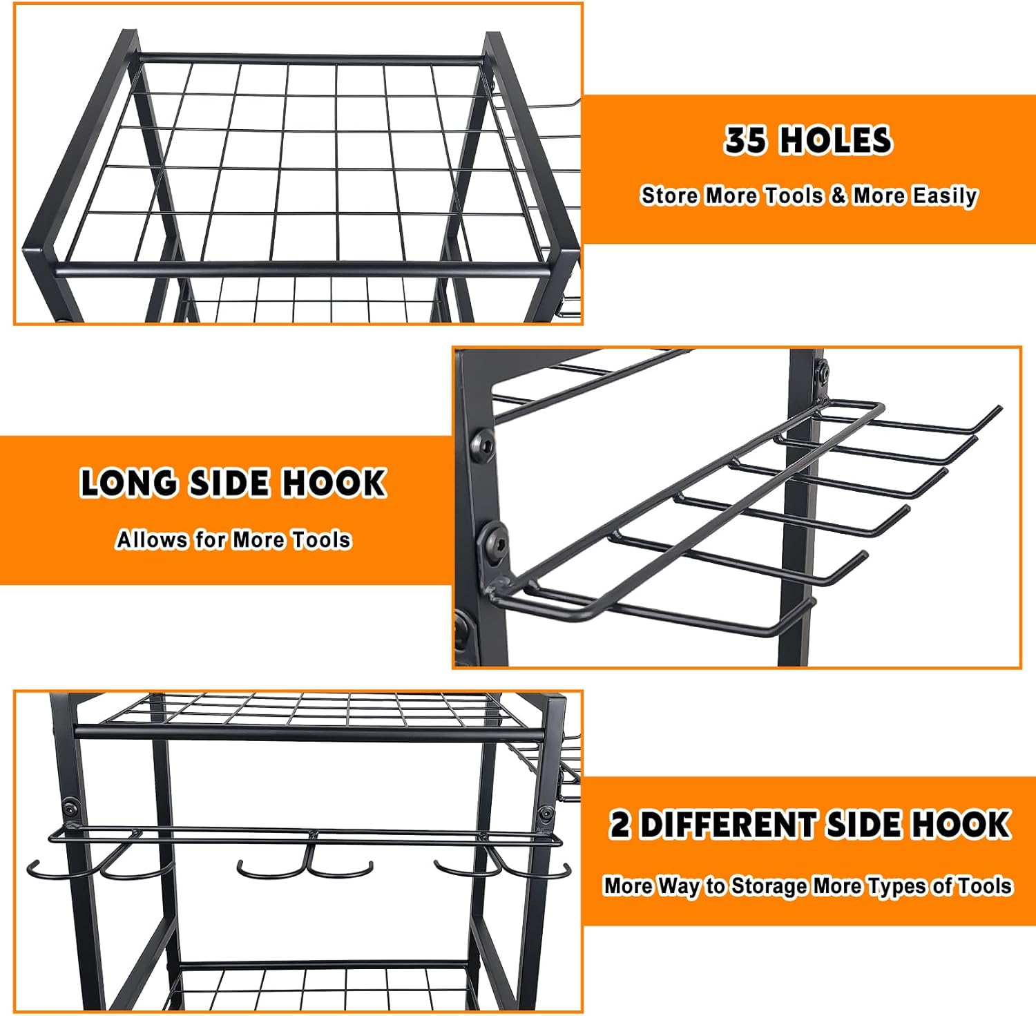 • Heavy Duty Steel: The garden storage made of a coated steel frame that's sturdy enough to withstand indoor or outdoor use. In contrast to plastic tool rack, ours is constructed from the high quality steel, making it rust-resistant and corrosion-resistant