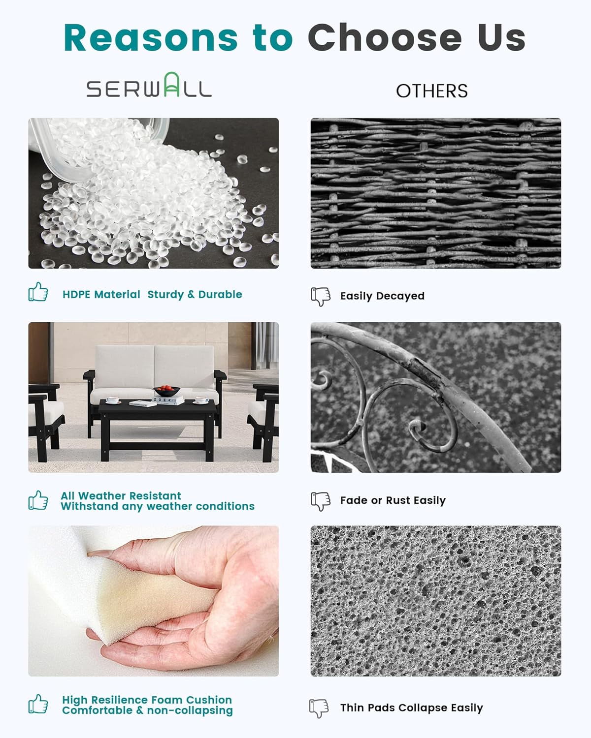 • After-sales Support: We want our customers to be 100% satisfied with serwall outdoor furniture - you can always come to us for any product questions and product care, we are committed to your satisfaction.