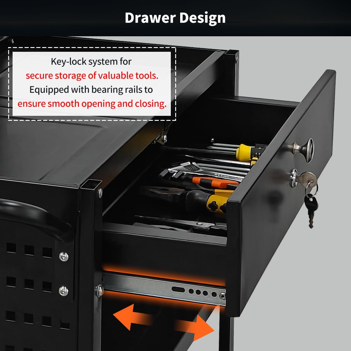 • 【Heavy Duty Steel Construction】 Strong frame and drawer provide heavy duty durability, ideal for workshop service carts, garage organizers, and utility rolling storage.