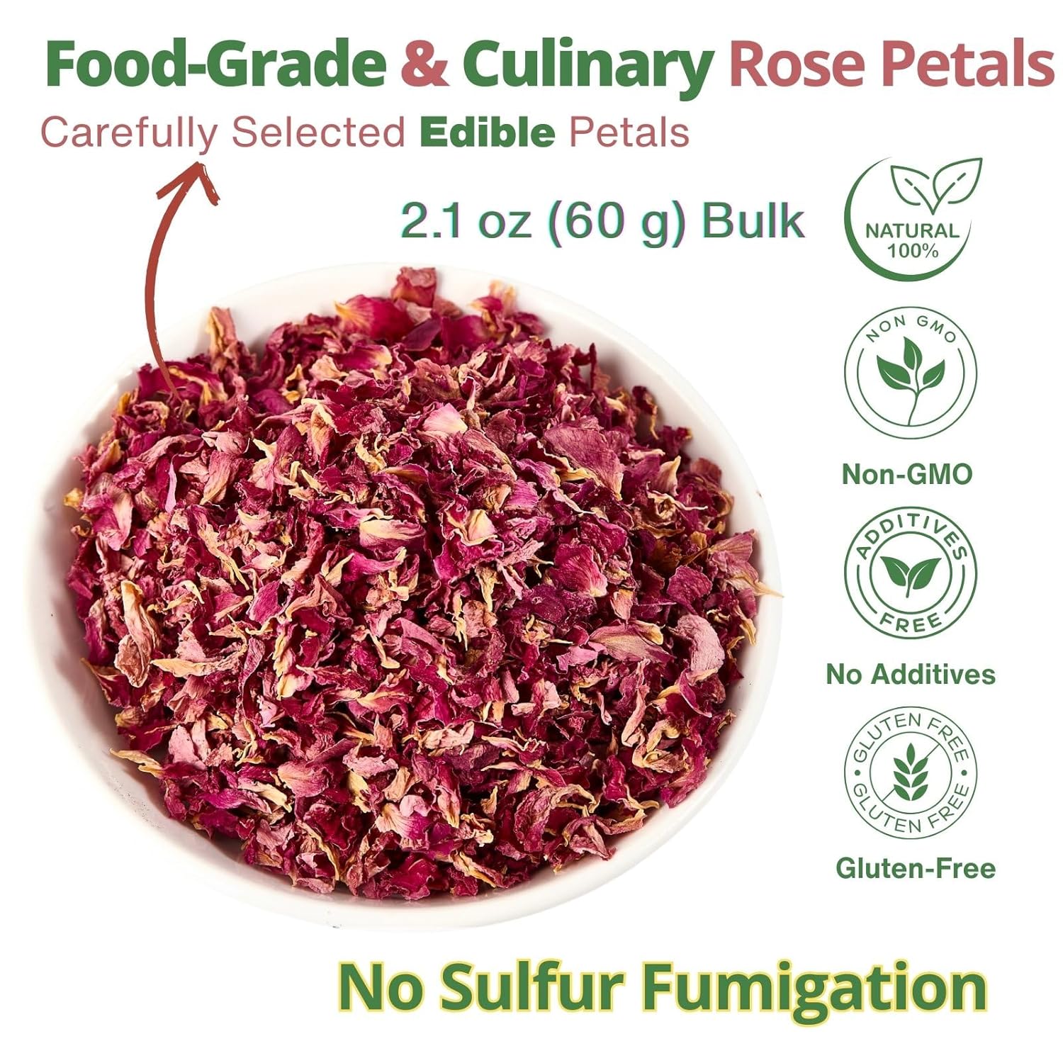 • 【Food-Grade & Edible】Premium dried rose petals edible—carefully selected and naturally dried. No additives, no artificial colors, caffeine-free, vegan. Perfect food grade rose petals for everyday kitchen and craft use
