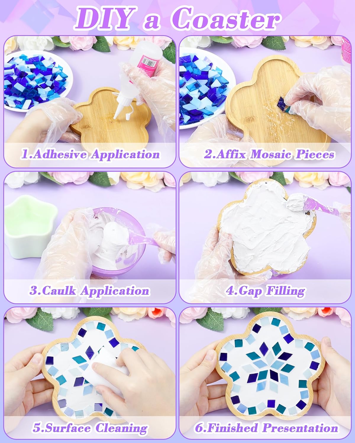 • Easy to Clean: If your glass mosaic tiles for crafts lose their shine, simply wipe them with a damp cloth to restore their glossy finish, keeping your mosaic art looking fresh.