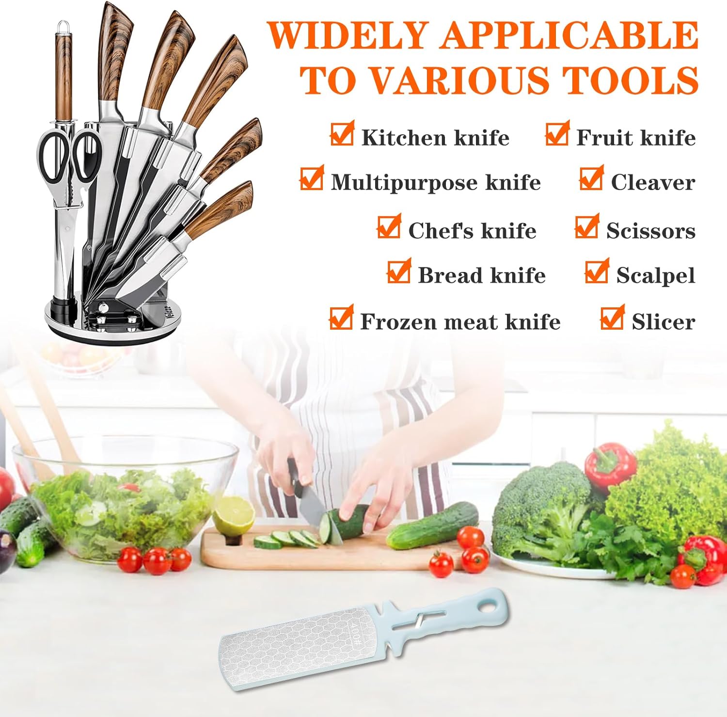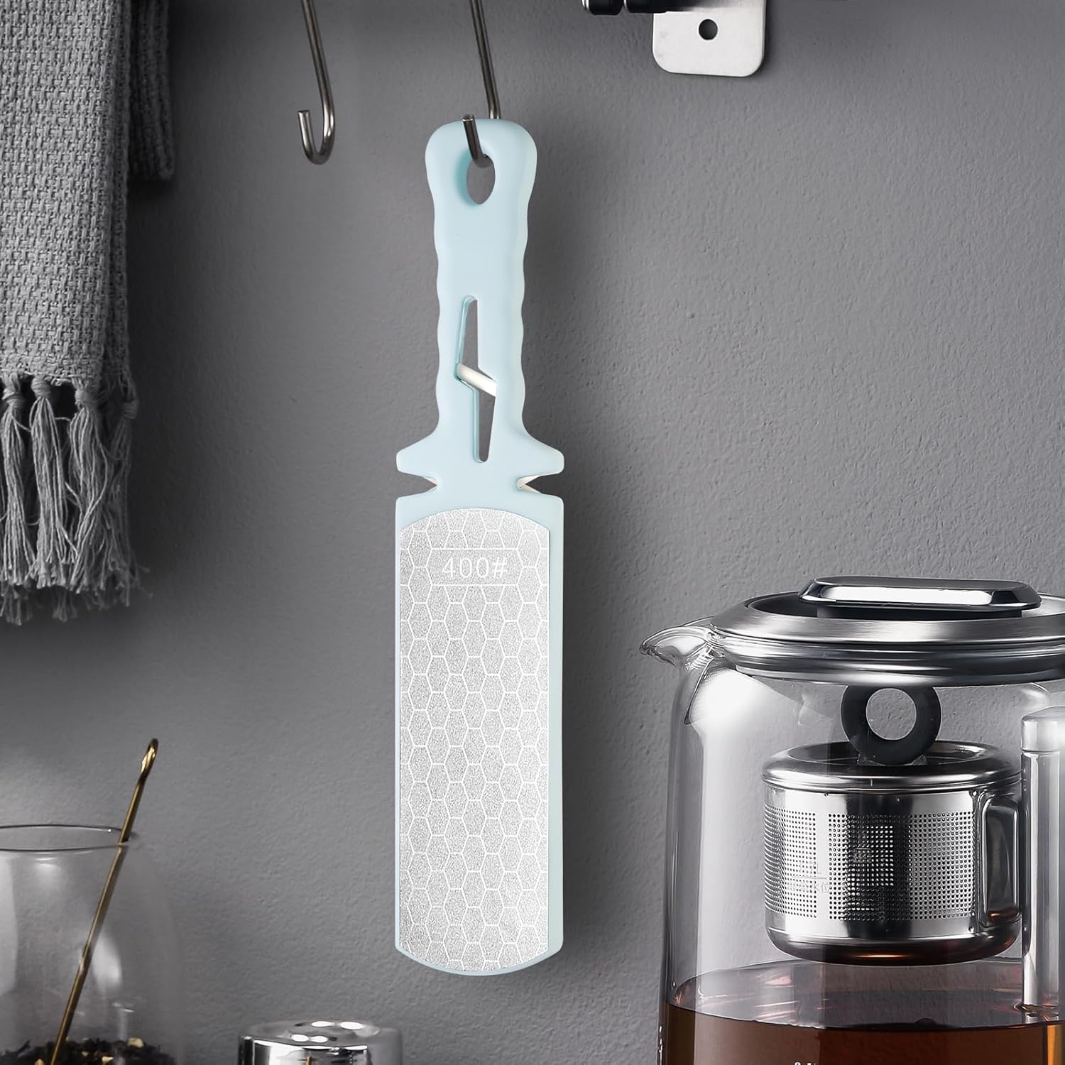 • Portable Size: The size of the 5 in 1 knife sharpener is about 11x2.17 Inches (L x W), with a hanging hole,It's convenient to storage and save space. What a perfect kitchen gift for your family & friends!