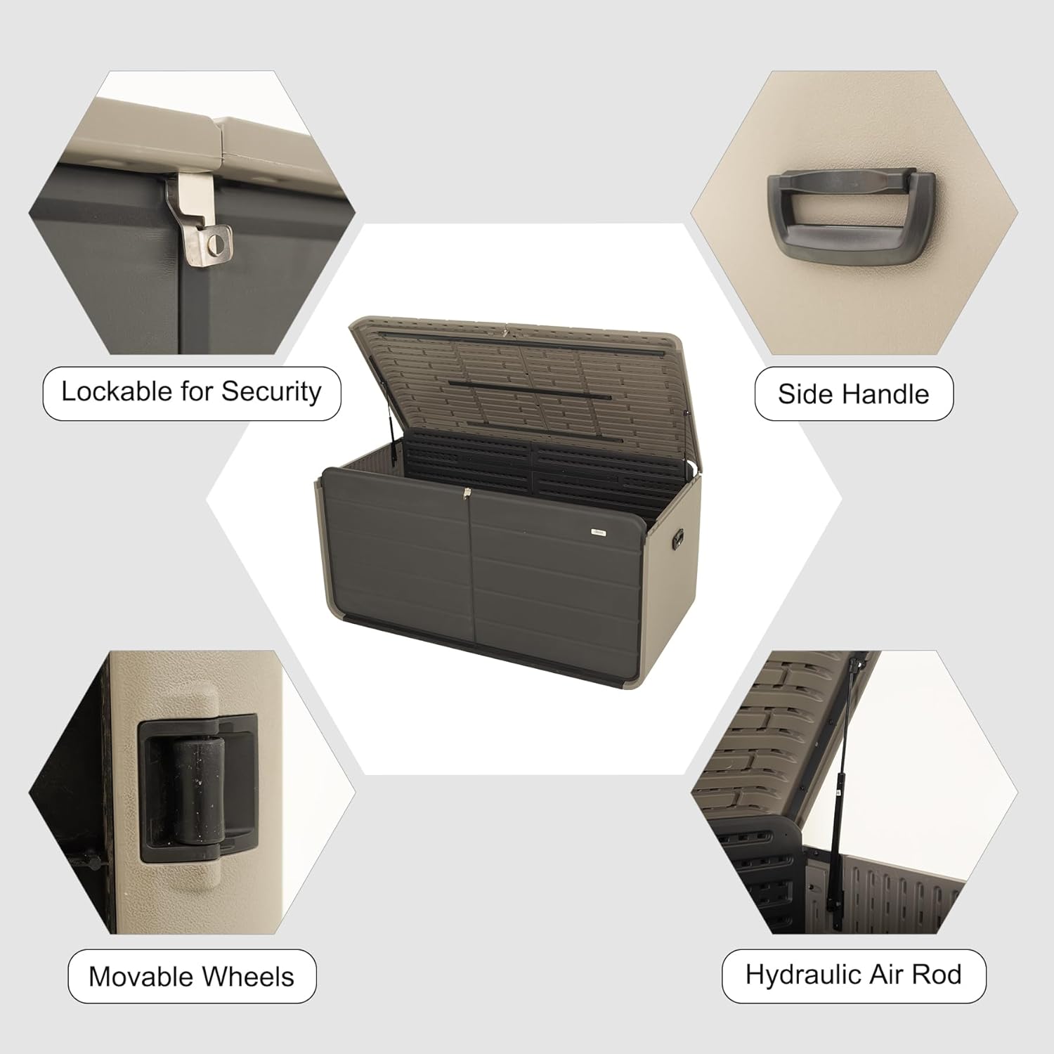 • Hydraulic Air Rod Design - Featuring two hydraulic air rods, domi patio storage box allows for effortless opening and slow, controlled closing, minimizing the risk of pinched fingers and ensuring safe and smooth operation.