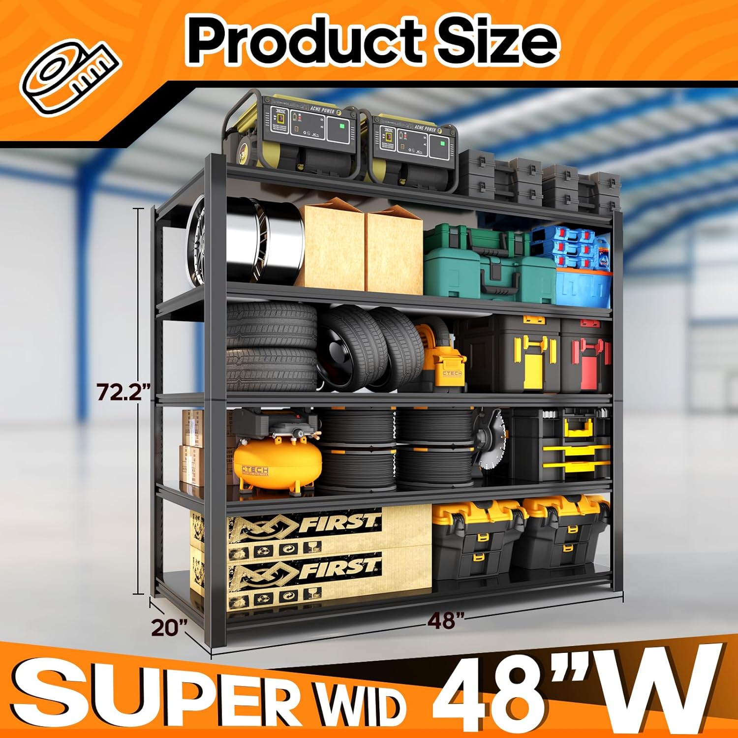 • 【Sturdy Double-Layer Upright Design】 Our heavy duty garage shelving unit features upgraded double-layer steel uprights and inner keyhole design for extra stability, preventing bending or wobbling even under full load. This metal shelving unit is built to last and a great alternative to garage shelves like gorilla racks.