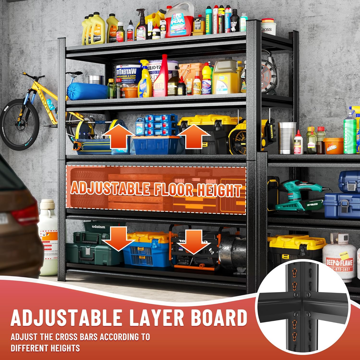 • 【Perfect for Various Storage Needs】Whether you're organizing tools, equipment, or household items, this versatile Garage Shelving is ideal for a wide range of applications. Its high weight capacity and durable construction make it the perfect addition to any garage, workshop, or storage area