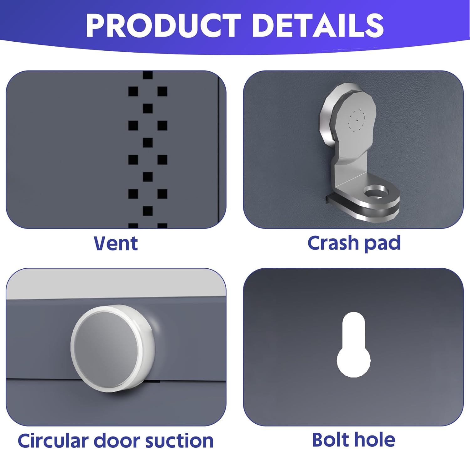 • 【Unique Design】 The door of the steel locker is equipped with ventilation holes and the ventilation holes help you keep the items dry and ventilated eliminating odor and moisture. Each locker compartment include a lift up handle and recessed hasp for added security and can accommodate built-in combination or key locks and combination or key padlocks